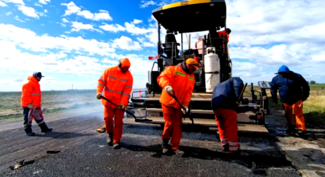 Actualmente, se están ejecutando las tareas para la realización de la carpeta asfáltica, que incluyen la rehabilitación de la calzada mediante el texturizado de la superficie, ensanche y pavimentación de calzada principal y banquinas, con una capa de rodamiento de 5 centímetros de espesor.