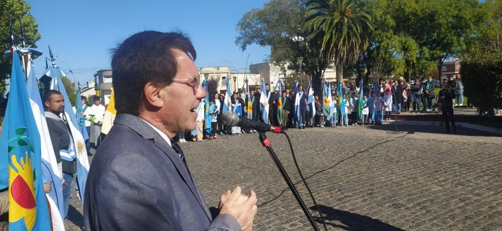 El intendente Juan Chalde presidió en la mañana de este 9 de Abril el Acto Oficial celebratorio del Centésimo Trigésimo Aniversario de la creación de Coronel Dorrego, ante una importante presencia de autoridades, representantes de instituciones y público. Luego del izamiento del Pabellón y la entonación del Himno Nacional habló el intendente Chalde quien en el inicio de su alocución hizo mención a la Canción Oficial del Distrito, El Triunfo del 90, de Rubén Terrón, destacando "Yo nací en el 90 quiso el destino que fuera Las Mostazas, mi apelativo; después el viento dijo serás Dorrego y la tierra dormida me dio su acento"; sobre ello el jefe comunal manifestó: "Se me ocurre pensar hoy, a 135 años del nacimiento de nuestra ciudad, que esa tierra dormida, nos ha dado y nos sigue dando hoy, mucho más que su acento, nos ha dado la savia necesaria para tener la inspiración, el vigor, el coraje, para trabajar día a día por esta ciudad para que vaya creciendo cada vez más; nos ha ido dando las maneras para zanjar viejas diferencias; tengo la convicción de que tenemos que marcar nuestras disidencias con todas estas diferencias enormes y peleas que están atravesando hoy el Mundo entero". Luego se refirió al trabajo que realizan todos los días, oficialismo y oposición, "para que Coronel Dorrego sea cada vez más lindo de ser vivido" enfatizó. Tenemos ejes centrales para realizar el trabajo dijo y luego se refirió a Cultura y Deportes y destacó las realizaciones culturales y deportivas tanto en el centro como en los barrios de la ciudad , que son - dijo - la excusa perfecta para la charla, para compartir y fundamentalmente escuchar, tan importante para poder entendernos, enfatizó. Más adelante habló de la construcción de viviendas, también como eje sustancial de la tarea de gobierno. Además hizo hincapié en la construcción de viviendas por parte del sector privado, destacando que la ciudad está creciendo. "Tenemos otros desafíos importantes, como es mantener esta ciudad limpia y ordenada y en ese sentido les pido a la población el acompañamiento, porque esto necesariamente se hace entre todos" Luego se pronunció acerca de la salud, habló del Centro de Emergencias que fue elogiado por el ministro de infraestructura provincial en su última visita a Coronel Dorrego y la inminente instalación de un tomógrafo en el Hospital. Habló luego de la educación expresando "que es el mejor camino para el crecimiento y para la libertad de las personas". Acerca del Centro de Día, manifestó su alegría ya que hoy 9 de abril cumple su primer año. En el final de su alocución Chalde dijo "quiero que sepan del compromiso que tenemos para trabajar cada uno de los temas en cercanía, conversándolos. Hizo una reflexión acerca de lo acontecido en Bahía Blanca que padeció una tremenda inundación; envió nuevamente un mensaje de solidaridad a toda la gente de Bahía Blanca y por otro lado resaltó que la respuesta que dio Coronel Dorrego a las necesidades de la vecina ciudad fue realmente emocionante. Finalizó diciendo el intendente Chalde. Luego integrantes del Cuerpo de Danzas de la Peña Nativista interpretaron dos danzas, para culminar el Acto cantando todos el Triunfo del 90, canción Oficial del Distrito, del recordado músico y poeta dorreguense Rubén Alberto Terrón.