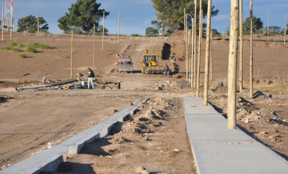 Dos años después -a mediados de 2023-, con las calles ya delimitadas, comenzó la construcción de cordones cuneta y veredas perimetrales, además de la colocación de postes para el servicio de alumbrado público.