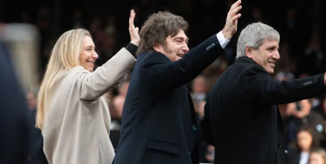 “Desde hoy, las retenciones a la carne aviar y vacunas se reducirán del 6,75% a 5%; las retenciones al maíz de 12% a 9,5%; las retenciones al sorgo de 12% a 9,5%; las retenciones de girasol de 7,5% a 5,5% y 4%, y también las retenciones a la soja, del 33% al 26% y a las sucraductas de soja de 31 a 24,5%”, remarcó, tal como se esperaba.   Milei explicó que la decisión “redunda en una reducción de retenciones de las alícuotas para las cadenas de granos del 20% y una reducción de retenciones en la cadena de ganado y carnes del 26% que será permanente y lo cual busca dar impulso al campo, el sector con mayor productividad en la economía y fuertemente cantados puestos en los últimos 20 años”.   El mandatario llegó acompañado por su hermana, la secretaria general de la Presidencia, Karina Milei, y el ministro de Economía, Luis “Toto” Caputo. Los tres giraron a bordo de una camioneta 4x4 por la pista central y recibió aplausos de las cuatro tribunas. En el palco los esperaban, el presidente de la Sociedad Rural Argentina (SRA), Nicolás Pino, y algunos ministros, como Guillermo Francos, Patricia Bullrich y Luis Petri, entre otros. Sin embargo, destacó la ausencia de la vicepresidenta Victoria Villarruel. El acto comenzó poco antes de las 11 con el desfile del cuerpo de Granaderos.