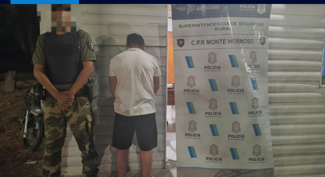 Ante el aviso, efectivos del Comando de Prevención Rural (CPR) Monte Hermoso, dependiente de la Coordinación Zonal de Seguridad Rural Tres Arroyos, se dirigieron al lugar y constataron la presencia del agresor, un ciudadano de sexo masculino, mayor de edad. El parte de prensa no difundió su identidad.
