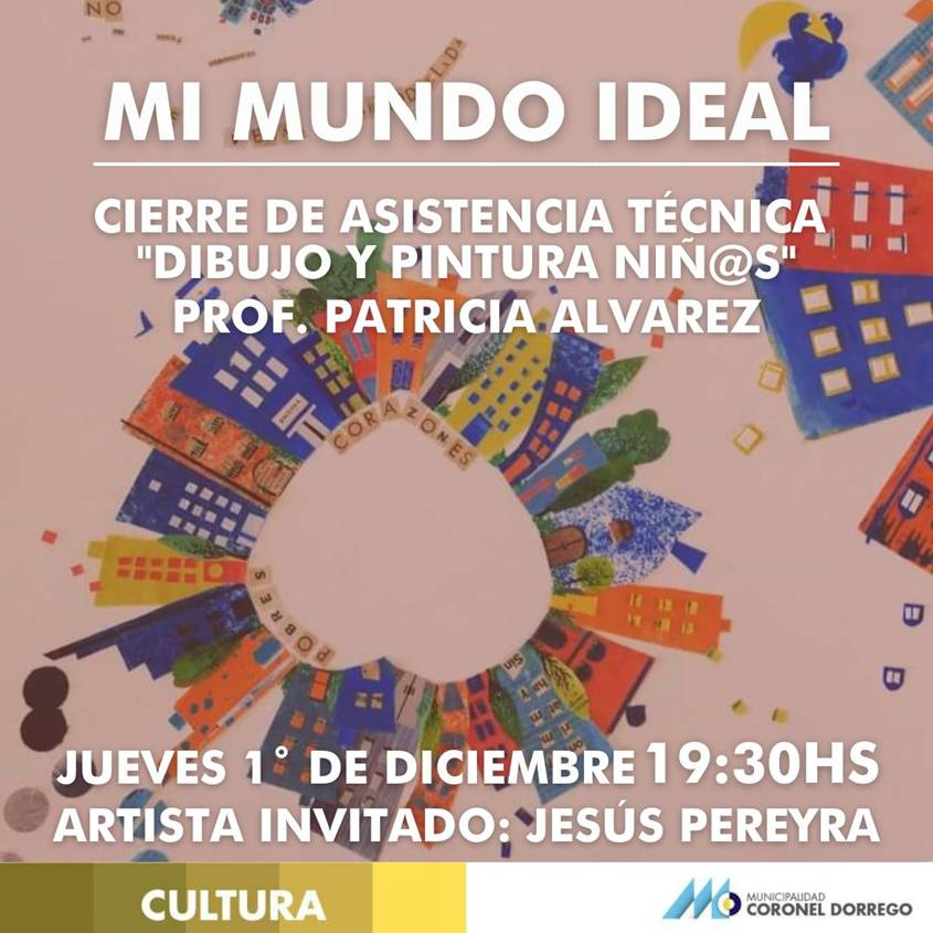El jueves 1º desde las 19:30 en el Centro Cultural se realizará y con el título: Mi Mundo Ideal, el cierre de la asistencia técnica de dibujo y pintura para niños y niñas a cargo de la profesora Patricia Alvarez. Participará, como artista invitado, Jesús Pereyra.