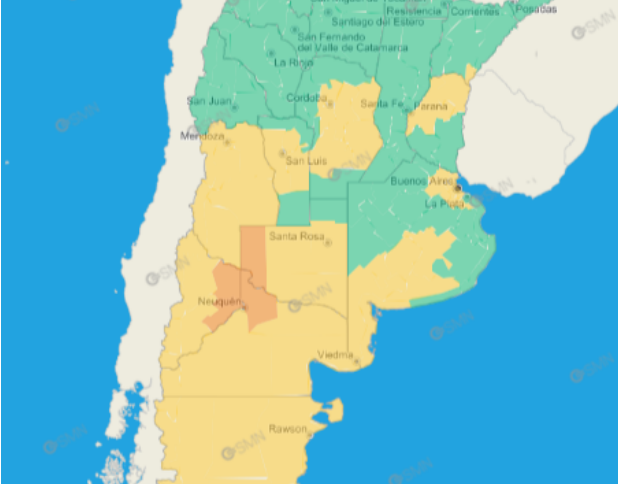 La máxima para este fin de semana llega a los 40 °C y el SMN emitió un alerta amarillo por altas temperaturas para gran parte del país, incluida Dorrego.