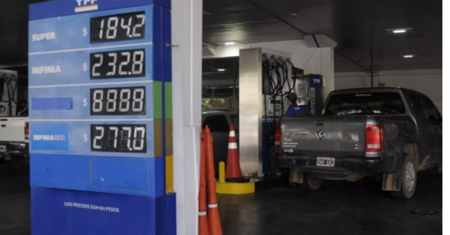En YPF, con los nuevos valores en nuestra ciudad, el valor de la nafta Súper pasó a costar 184,2 pesos; Infinia, 232,8, y Diesel 500, 197.