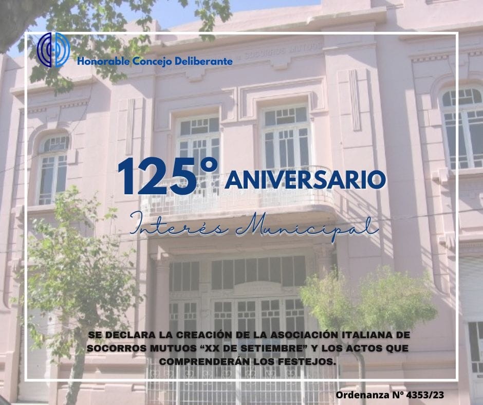 Se declara de interés municipal al aniversario N 125 de la Asoc Italiana de socorros mutuos de C Dorrego.