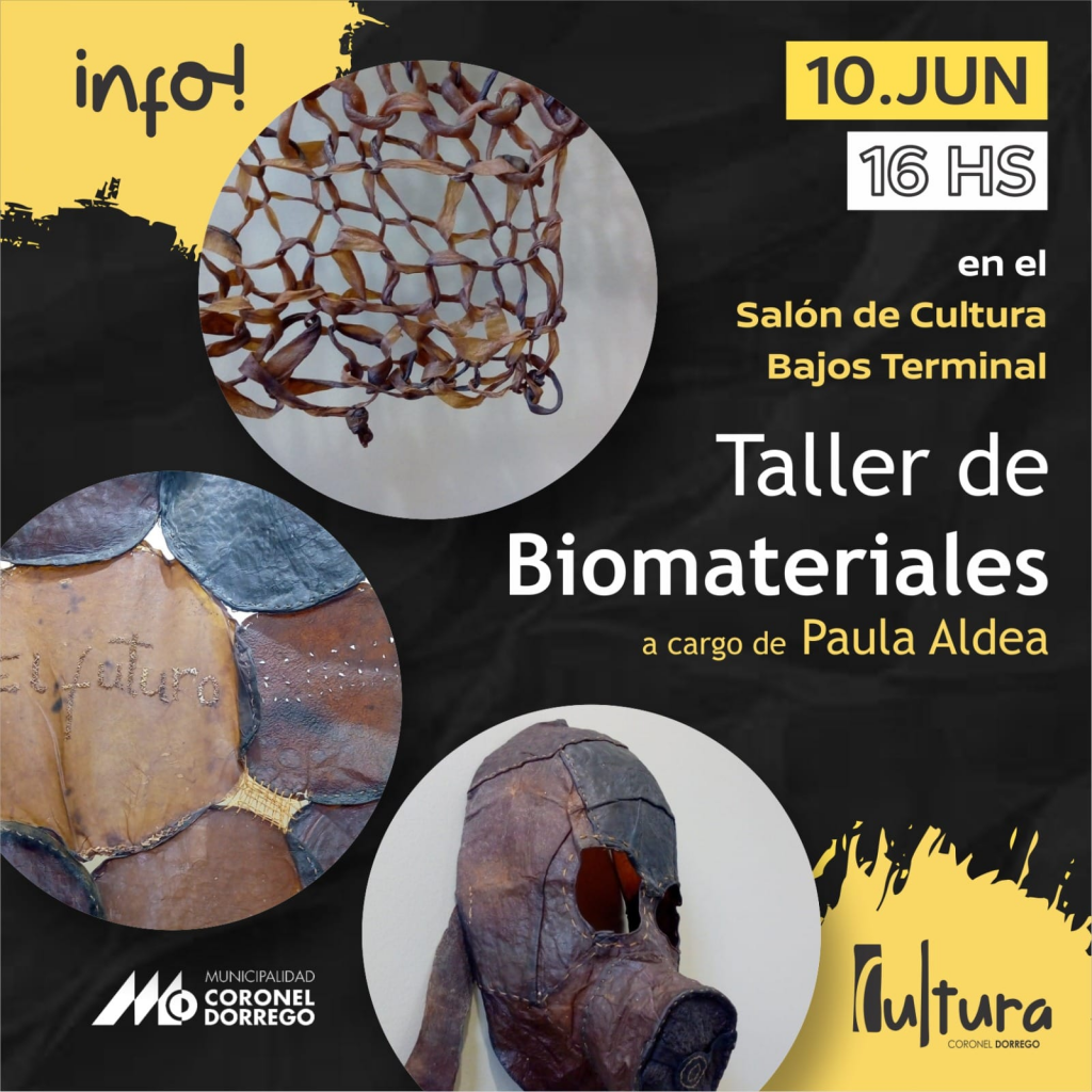 La dirección de Cultura a través del Museo Regional Carlos Funes Derieul anunció para el sábado próximo a las 16 en el salón ubicado en bajos de la Terminal de Omnibus un Taller de Biomateriales que estará a cargo de la artista Paula Aldea. Se utilizarán muestras de bioplásticos en dos versiones: vegetal y animal; combinando elementos naturales y artificiales. Los asistentes se llevarán las recetas y producciones terminadas.