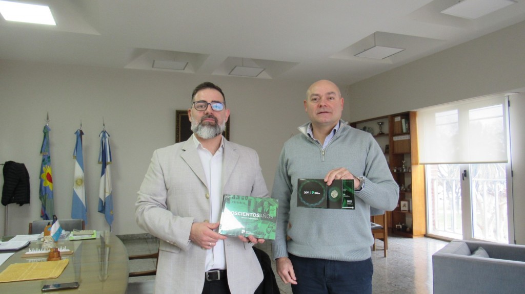 En la mañana de este martes el intendente Raúl Reyes recibió en su despacho a Nicolás De Francesco quien en representación del Banco de la Provincia de Buenos Aires entregó al jefe comunal un libro escrito por Felipe Pigna, relacionado con la historia de esa entidad bancaria y una moneda conmemorativa confeccionada a propósito del bicentenario de la institución crediticia.