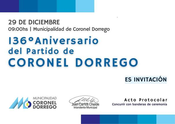 Dorrego celebrará sus 136 años. Acto Protocolar