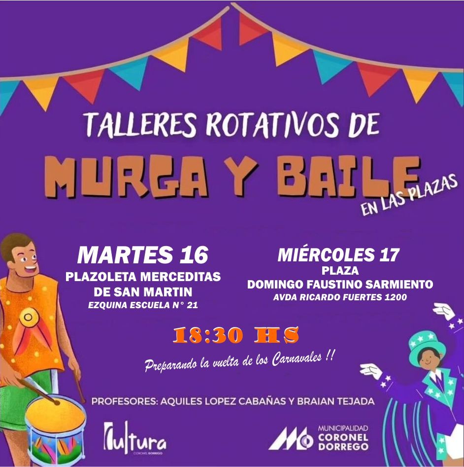 Tercera semana de 🥁Talleres de Murga y Baile🥁 preparando la Vuelta de Los Carnavales ✨️🎉 ✨️🥁 L@s esperamos a partir de las 18:30 hs 🎉🎵 los días: Martes 16 🌳 Plazoleta en calle H. Yrigoyen esquina Gregorio Juarez Miércoles 17 🌳 Plaza Rubén Alvarez calle El Gaucho entre Urdapilleta y 25 de Mayo coordinan: 🎵 Aquiles Lopez Cabañas✨️ Angel Braian Tejada🥁 Gero Larrosa