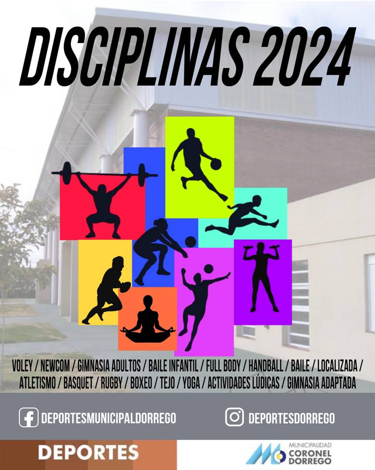 Voley, Newcom, Gimnasia Adultos, Baile Infantil, Full Body, Handball, Baile, Localizada, Atletismo, Basquet, Rugby, Boxeo, Tejo, Yoga, Actividades Lúdicas, Gimnasia Adaptada. Estas son las disciplinas que este año ofrece la Subdirección de Deportes este año.