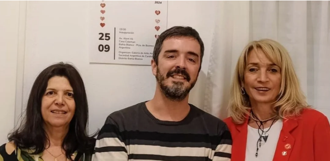“La idea es combinar esta exposición de arte temática y la iluminación en color rojo durante toda la semana de los edificios más emblemáticos de la ciudad para poder dar alcance y llevar a la comunidad el mensaje de cuidado de los factores de riesgo y charlas sobre RCP”, aclara Franco Gregorietti, cardiólogo, presidente de S.A.C, Sociedad Cardiológica Argentina, Distrito Bahia Blanca.