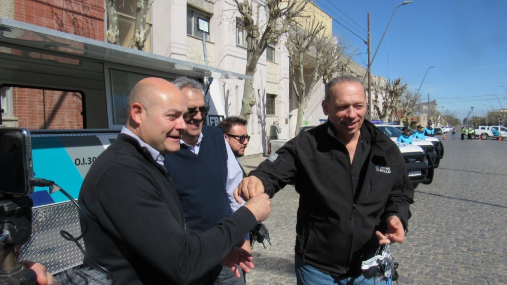 Ayer martes el intendente Raúl Reyes recibió en su despacho junto a concejales y miembros del gabinete al ministro de Seguridad de la Provincia de Buenos Aires, Sergio Berni. Posteriormente el jefe comunal y el jefe de la cartera de Seguridad bonaerense ofrecieron una conferencia de prensa y por último el doctor Berni hizo entrega de las llaves de 6 patrulleros destinados a nuestro Distrito y una comisaría móvil para ser usada en distintos eventos realizados en Coronel Dorrego.