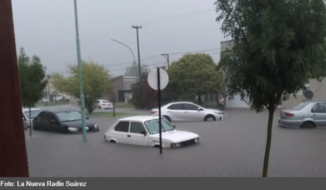 Las intensas lluvias que azotan la región han provocado graves inundaciones en los municipios de Adolfo Alsina, Guaminí y Coronel Suárez, informaron medios locales.