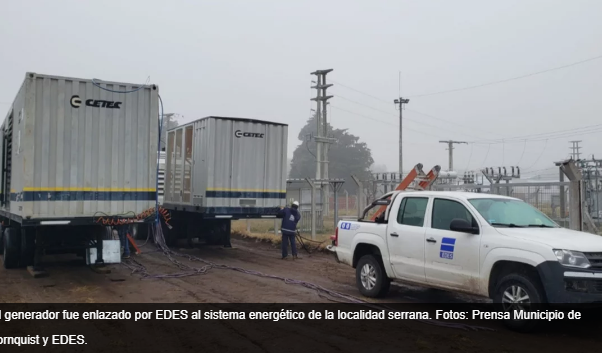 La empresa prestadora del servicio de energía eléctrica EDES instaló un equipo generador de 1.500kva en la estación transformadora de Sierra de la Ventana, el cual quedará enlazado con la red existente para los casos en que se requiera su puesta en marcha.