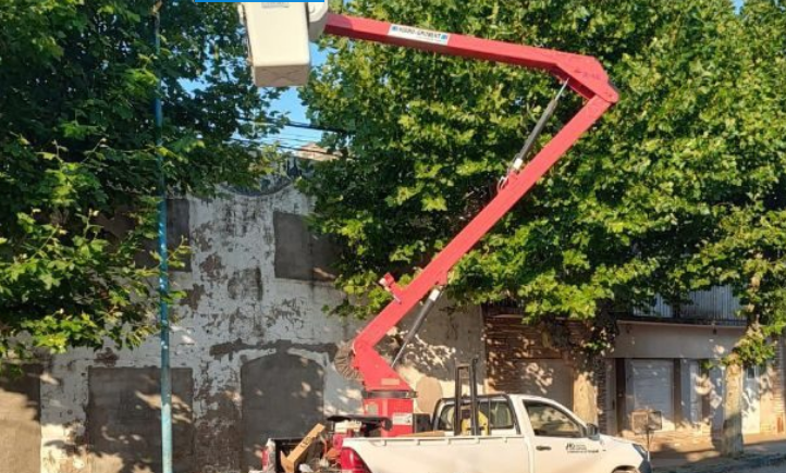 a Municipalidad confirmó está mañana que se están realizando tareas de recambio e instalación de luminarias led de 150 W sobre la calle Presidente Perón, en el tramo comprendido desde calle Yrigoyen hasta calle Colón.