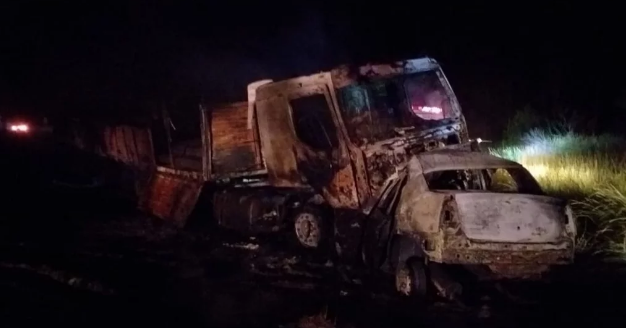 Se produjo un impacto entre un camión y un auto sobre la última medianoche a la altura del kilómetro 715. Ambos vehículos se prendieron fuego.