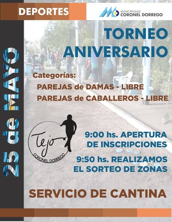 Este jueves 25 desde las 9 en instalaciones del Vivero Parque Municipal, se llevará a cabo el clásico Torneo Aniversario de Tejo. Participarán delegaciones de toda la zona. Estará reservado para las categorías