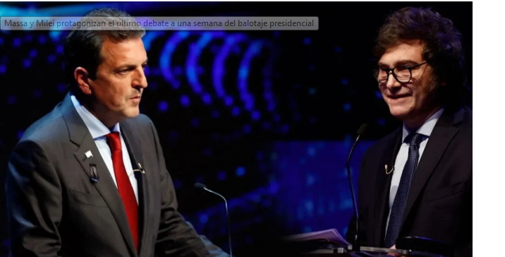 A una semana de las elecciones que definirán quién será el nuevo presidente de Argentina, los candidatos de Unión por la Patria (UxP), Sergio Massa, y de La Libertad Avanza (LLA), Javier Milei, protagonizarán esta noche el último debate, en el que buscarán resaltar sus principales propuestas y convencer al electorado que no votó por ninguno de ellos en las generales.