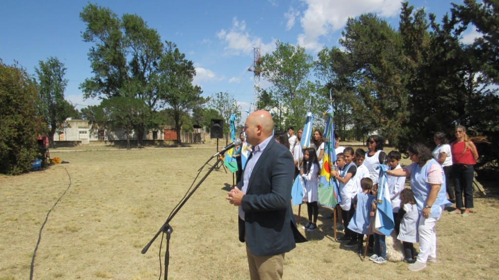 Luego del izamiento del Pabellón Nacional, habló el jefe comunal dorreguense destacando entre otros conceptos: “Es un placer venir a encontrarnos con el interior de nuestro distrito; pero por ser el interior del distrito no es menos importante. Venir a estas localidades, quienes vieron la luz por la fuerza que una locomotora del tren imprimió por aquellos tiempos; el tren traía gente, traía información, traía libros y revistas, traía alimentos, traía sueños y esperanzas y durante mucho tiempo fue quien le dio vida junto a todos los pobladores que decidió por distintas razones vivir aquí. Vinieron inmigrantes desde distintas partes del Mundo; trajeron consigo muchas cosas de las que hoy nosotros disfrutamos: ropa, comida, costumbres. Para mí, esa misma fuerza que en algún momento fue perdiendo el tren es la que ustedes tomaron y es la que hace que hoy estos pueblos estén como estén, tengan educación; éste (Aparicio), precisamente con tres niveles, tiene un JIRIMM, Escuela primaria, Escuela secundaria; se va a reformar la cocina de la escuela primaria para tener un horario extendido; lo mismo pasa en San Román; Irene, con su escuela primaria; todas han mejorado el servicio de agua. Por ejemplo la Unidad Sanitaria de Aparicio acaba de incorporar aparatos de aire acondicionado, una enfermera va tres veces por semana a San Román. Podríamos enumerar muchas que pareciera que son fáciles de implementar pero no es fácil, les puedo asegurar; y esa fuerza, decía, que fue perdiendo el tren, las fuimos ganando todos nosotros, principalmente ustedes que son lo que están acá, los que trabajan acá. Todo esto lo tenemos que cuidar; lo hemos intentado quienes hemos llevado adelante las riendas del gobierno municipal todos estos años; estoy seguro que Juan Carlos Chalde, intendente electo, va a seguir con esa misma fuerza del tren, va a seguir interpretando el sentimiento y va a seguir haciendo que estas localidades vivan durante muchos años más”. Finalizó diciendo.