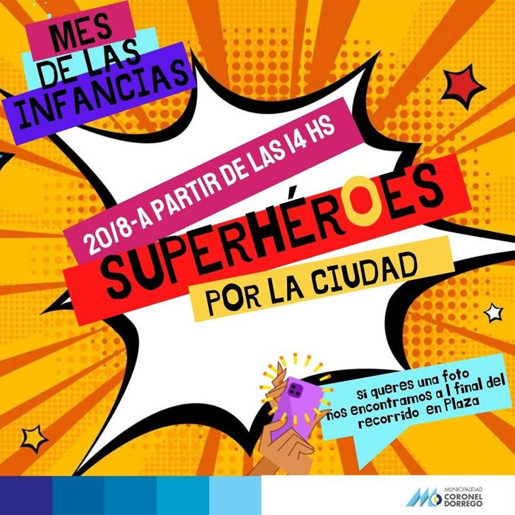 Mes de las Infancias. Superhéroes por la ciudad               El próximo sábado 20 desde las 14 se realizará un recorrido por las calles de la ciudad con Superhéroes con motivo de la celebración de la Infancias. Al final del recorrido, que será en la plaza central, los niños podrán tomarse fotografías con los personajes.