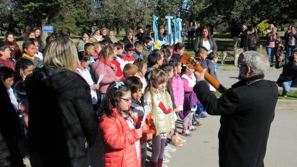 Luego del izamiento del Pabellón habló la docente de la Escuela Nº4, Andrea Blint quien se refirió al retoño del pino Histórico de San Lorenzo, que está ubicado en el patio del establecimiento y de cuya implantación se están cumpliendo 75 años. La docente también habló de los valores del General San Martín, entre otros conceptos.