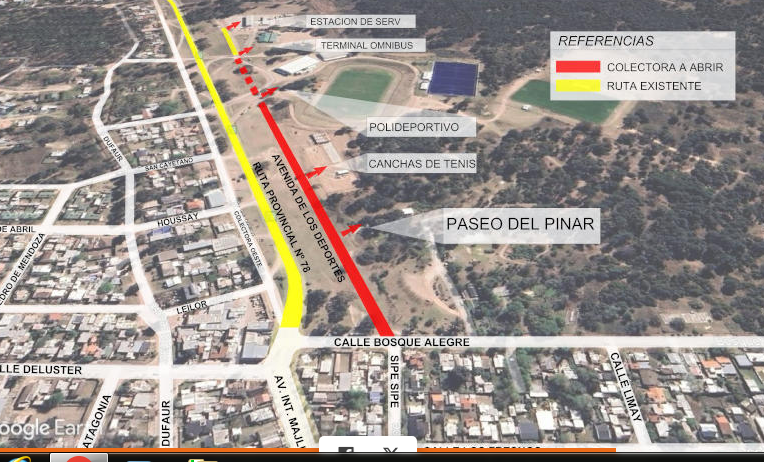 La futura arteria ‘colectora este’ que se nombrará «Avenida de los Deportes», tiene como objetivo «ordenar las vías de circulación, contar con un acceso directo a espacios de uso masivo y descomprimir el ingreso y egreso por Ruta 78, sobre todo en temporada», tal como remarcaron fuentes municipales.