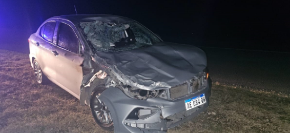 Minutos antes de 22:30 y a la altura del kilómetro 670, un Fiat Cronos no pudo evitar embestir a una vaca suelta que caminaba sobre la cinta asfáltica.