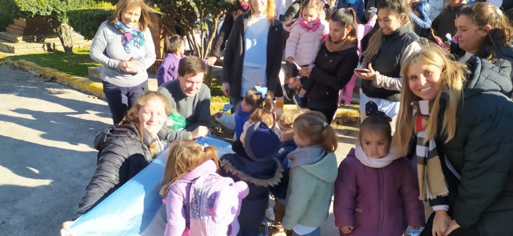El intendente Juan Chalde, acompañados de funcionarios, recibió esta mañana en la vereda frente a la comuna, a una delegación del Jardín de Infantes Nº:904 y de la Casa Materno Infantil Rayitos que caminaron hasta la Plaza Central en celebración del Día de la Bandera portando un importante estandarte. El jefe comunal entregó al Jardín de Infantes Nº:904 una Bandera de Flameo, que había sido solicitada días pasados durante una visita que realizaron al despacho del intendente; la Bandera anterior, con 50 años de antigüedad, fue entregada al Museo y recibida por el director de Cultura, Cristian Demarco.